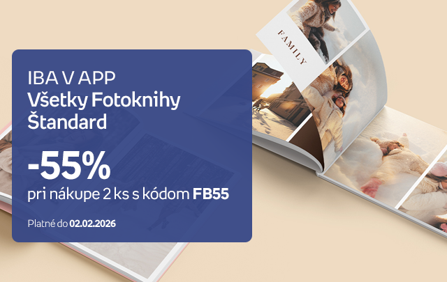 ⏰📢Iba v aplikácii! Všetky Fotoknihy Štandard -55% pri nákupe 2 ks s kódom FB55⏰