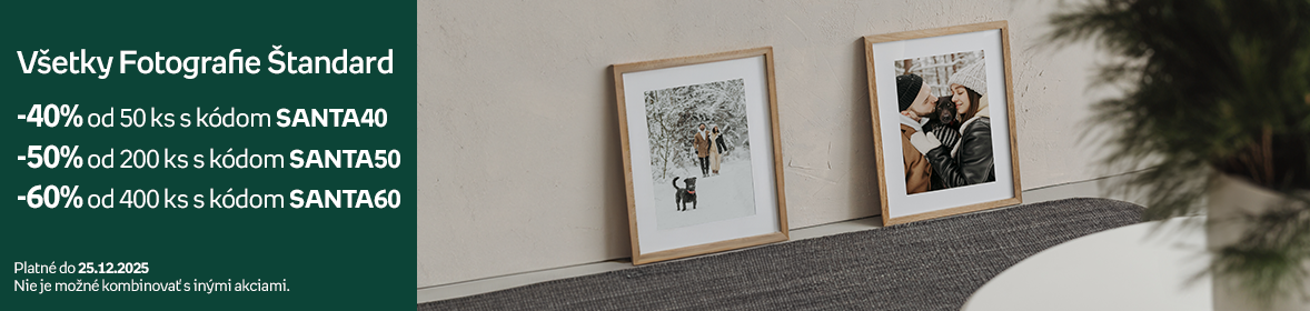 🎄-60% zľava na Fotografie 10x15 štandard, Kalendáre štandard, Fotoknihy, Obrázky, Plagáty od 15 EUR s kódom: GET60🎄